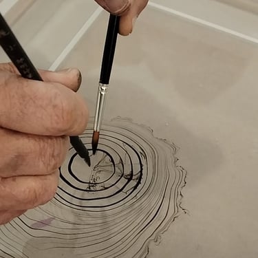 Es una técnica ancestral de la tradición zen de Japón y consiste en dibujar en el agua y pasar al papel de arroz.